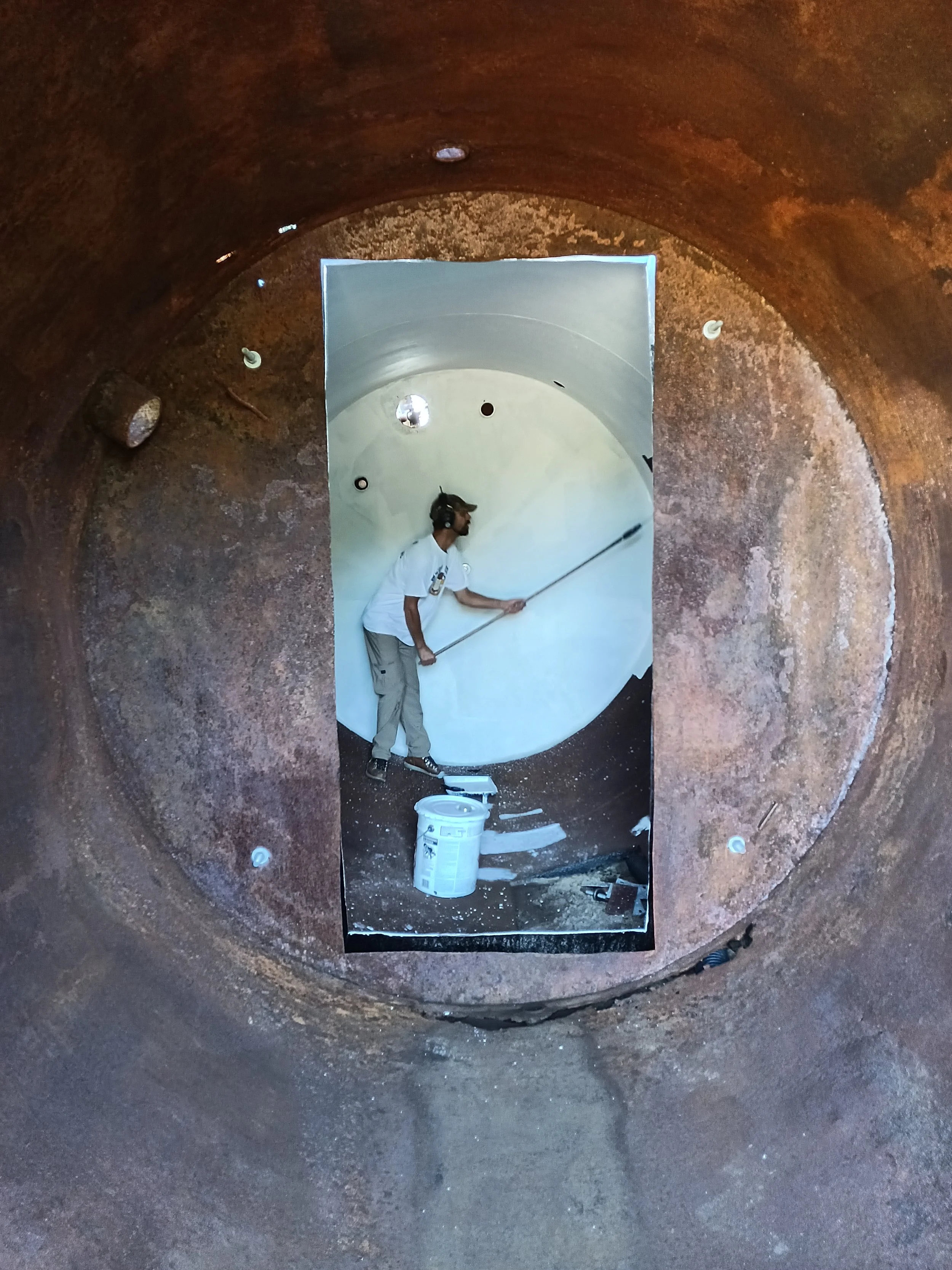 Next up, he painted the outside of the tanks with foundation coating to help prevent further rusting.