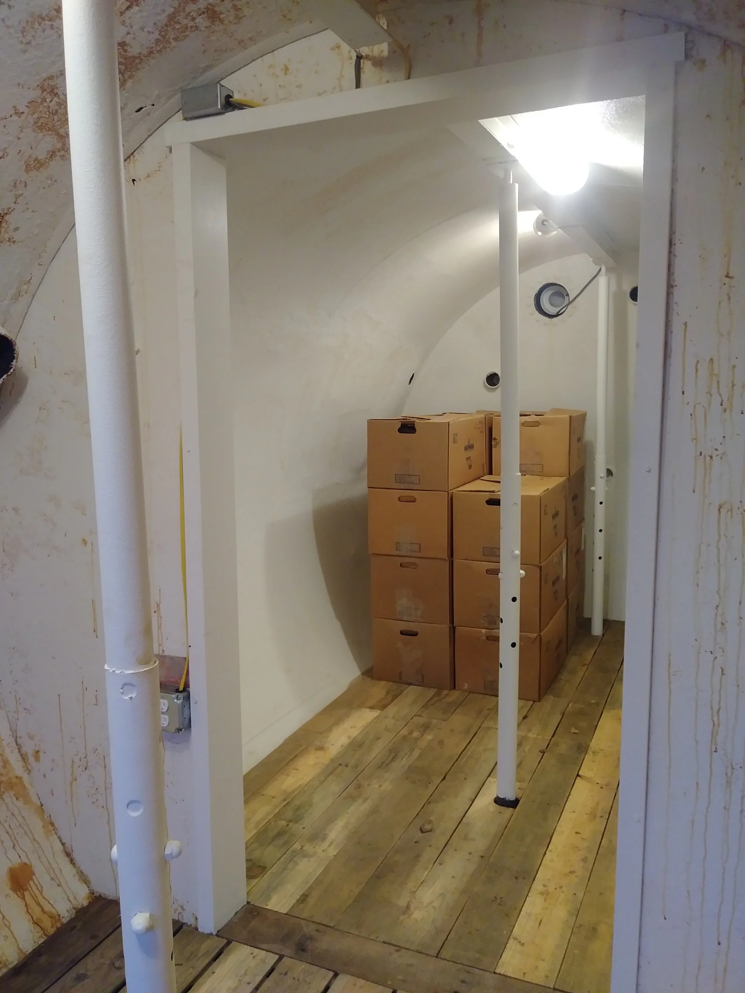 For good measure, John installed a center beam with supports. Also. Light!!! Yay! And outlets for heaters, dehumidifiers, air purifiers, etc.